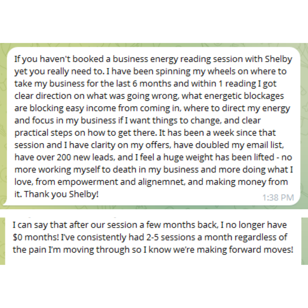 My work combines over a decade of real business experience with proven systems, personalized strategy, and energetic work that clears the patterns keeping you stuck. Because the strategy alone is never enough. You need both.