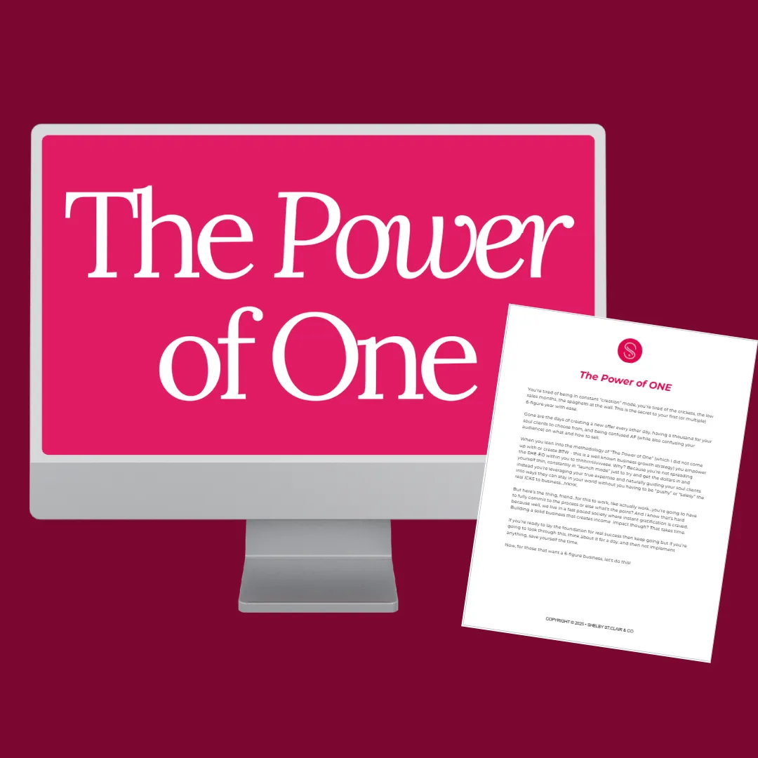 When you lean into the simplicity of “The Power of One” you empower the SHE-EO within you to thhhrrriiivvveee. Ultimately working less + making more.